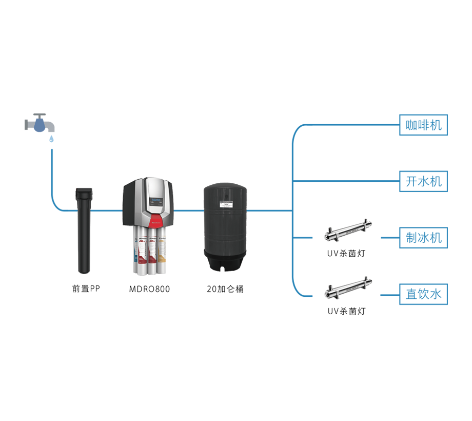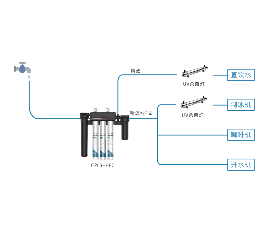 適用水質(zhì):原水TDS高于150 ppm,硬度高于60 ppm過濾功能:去除泥沙雜質(zhì),去除水垢,改善口感,調(diào)整TDS值,除菌